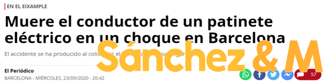 El día 23 de septiembre de 2020 falleció un hombre en Barcelona al ir en patinete eléctrico y colisionar con una furgoneta.
